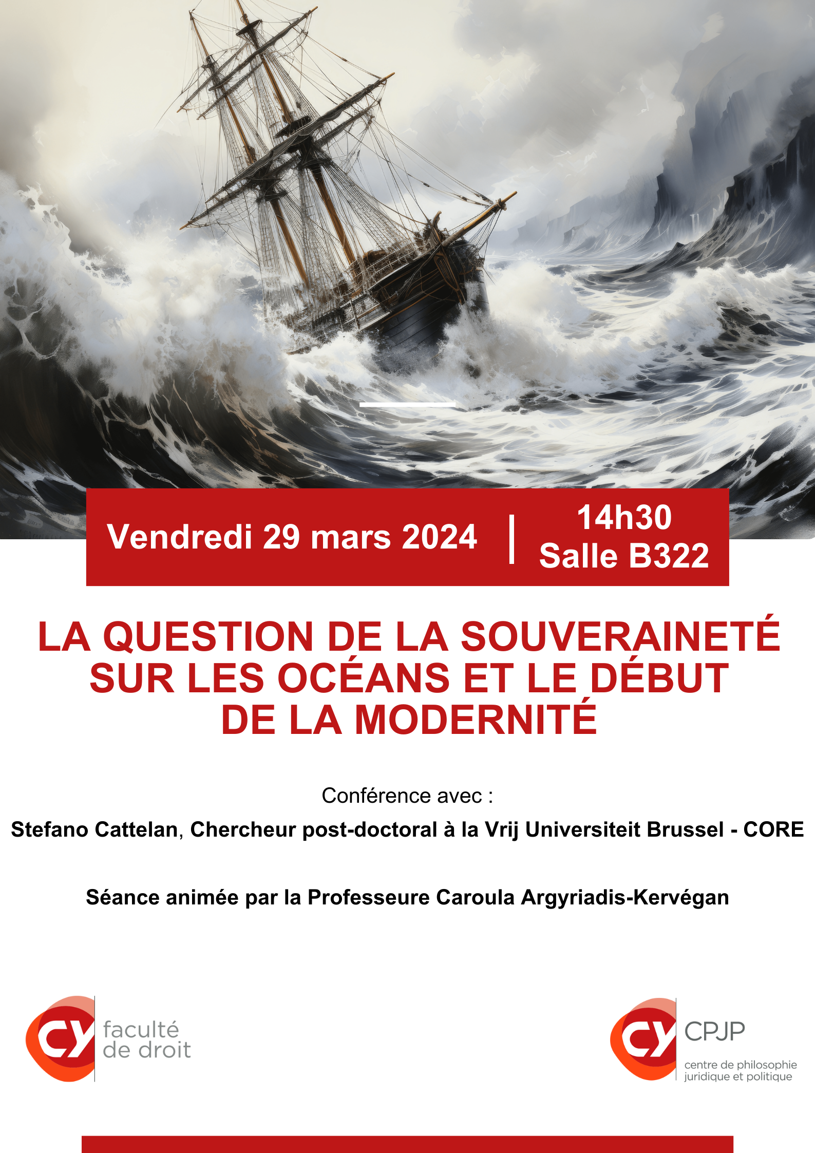 Le CPJP vous convie vendredi 29 mars 2024, à une conférence sur " La question de la souveraineté sur les océans et le début de la modernité ".