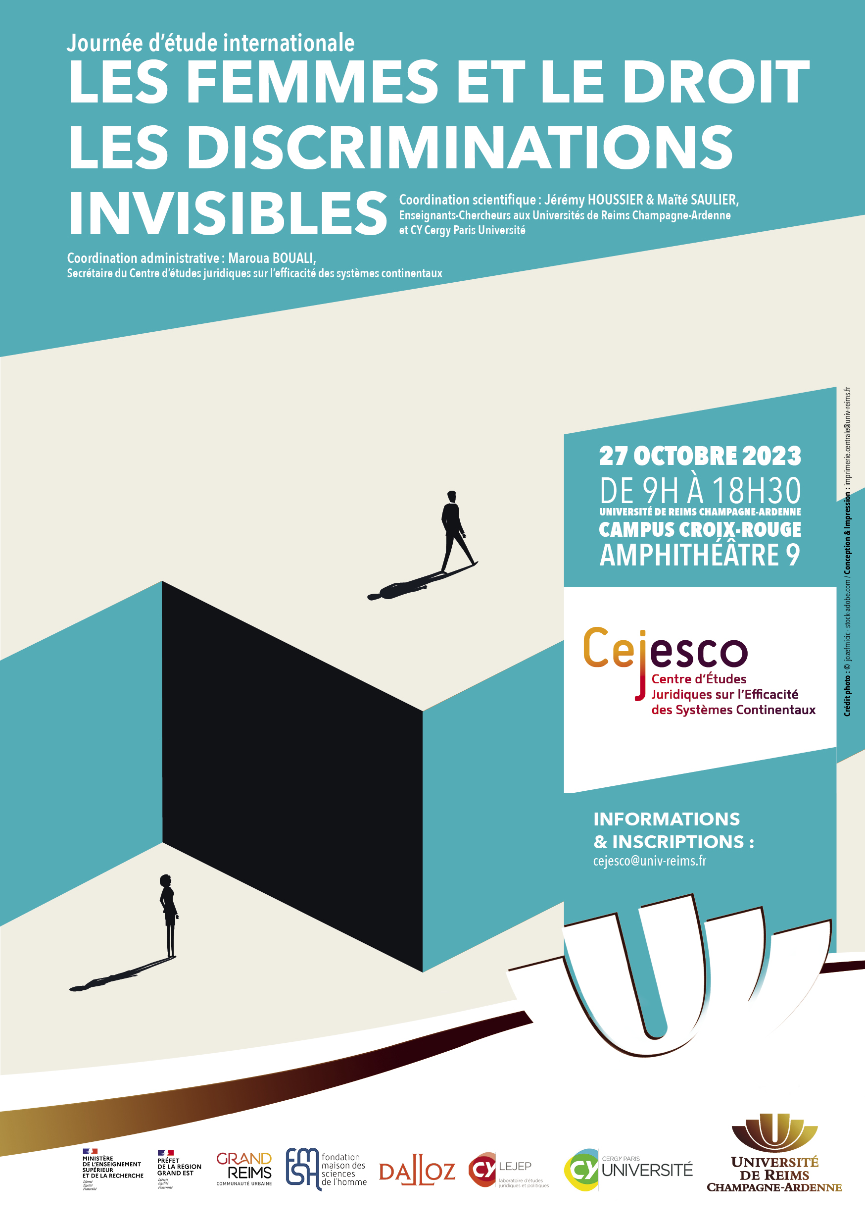 Journée d'étude internationale vendredi 27 octobre 2023 à l'Université de Reims Champagne-Ardenne portant sur le thème "Les femmes et le droit. Les discriminations invisibles".